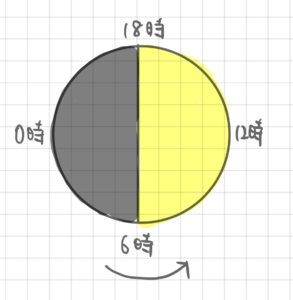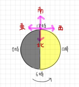 ② 反時計回りに回ることと、①を参考に0時、6時、12時、18時を特定する。